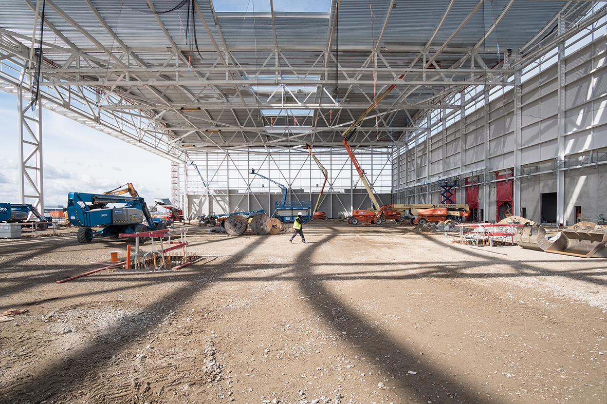 Om de nieuwe militaire Airbus A400M-transportvliegtuigen van de Belgische Defensie te kunnen onderhouden, moest er een nieuwe onderhoudsloods worden gebouwd. In februari 2020 startte Democo in Melsbroek met de bouw van deze loods. Anderhalf jaar later werd het gebouw opgeleverd. De nieuwe vliegtuigloods voor de Belgische Defensie werd ontworpen door Styfhals Architecten i.s.m. met Kardham.